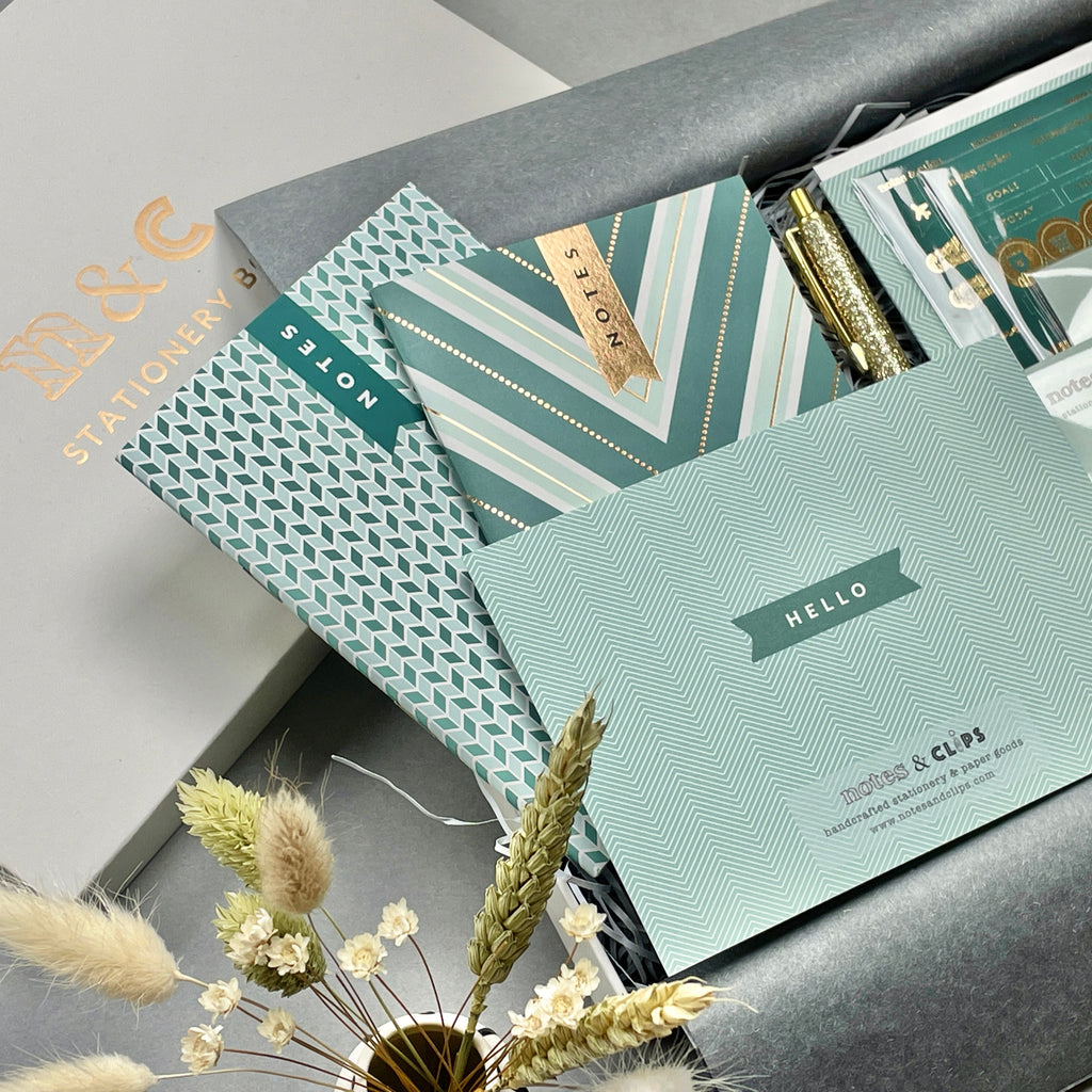 This is a stunning Green and Gold themed stationery box which makes a great treat for yourself or as a gift for the stationery lover in your life!